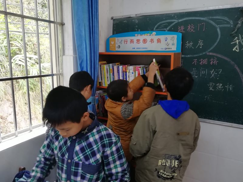 廣西百色市六豐村小學教室的一角,一改以往的空空蕩蕩,忽然多出了一組嶄新的木質(zhì)書架。