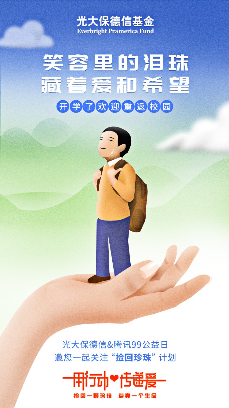 時值一年一度的“99公益日”已經(jīng)落下帷幕,光大保德信基金助力由浙江省新華愛基會發(fā)起的公益項目——撿回珍珠計劃,在9月7日—9月9日入駐騰訊平臺,旨在關(guān)注這些品學兼優(yōu)但因家庭貧困而面臨輟學的孩子,通過募集善款捐助,幫助他們重返校園。