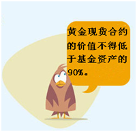 答:根據(jù)《黃金交易型開放式證券投資基金暫行規(guī)定》,黃金ETF可以投資于上海黃金交易所掛盤交易的黃金現(xiàn)貨合約,以及中國證監(jiān)會(huì)允許基金投資的其他品種。其中,持有的黃金現(xiàn)貨合約的價(jià)值不得低于基金資產(chǎn)的90%。